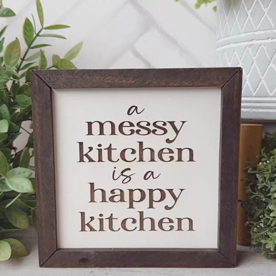 A Messy Kitchen Is a Happy Kitchen-Laser Engraved Wooden Sign