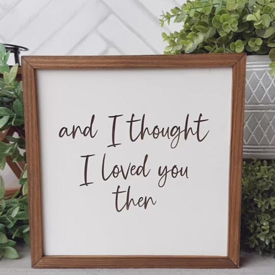Celebrate the depth of love and cherished memories with this beautifully handcrafted wood sign. Featuring the heartfelt phrase "And I thought I loved you then," this piece is perfect for commemorating a special relationship. Its timeless and minimalist design blends seamlessly with any home decor style, making it a meaningful addition to your space or a thoughtful gift for anniversaries, weddings, or Valentine's Day