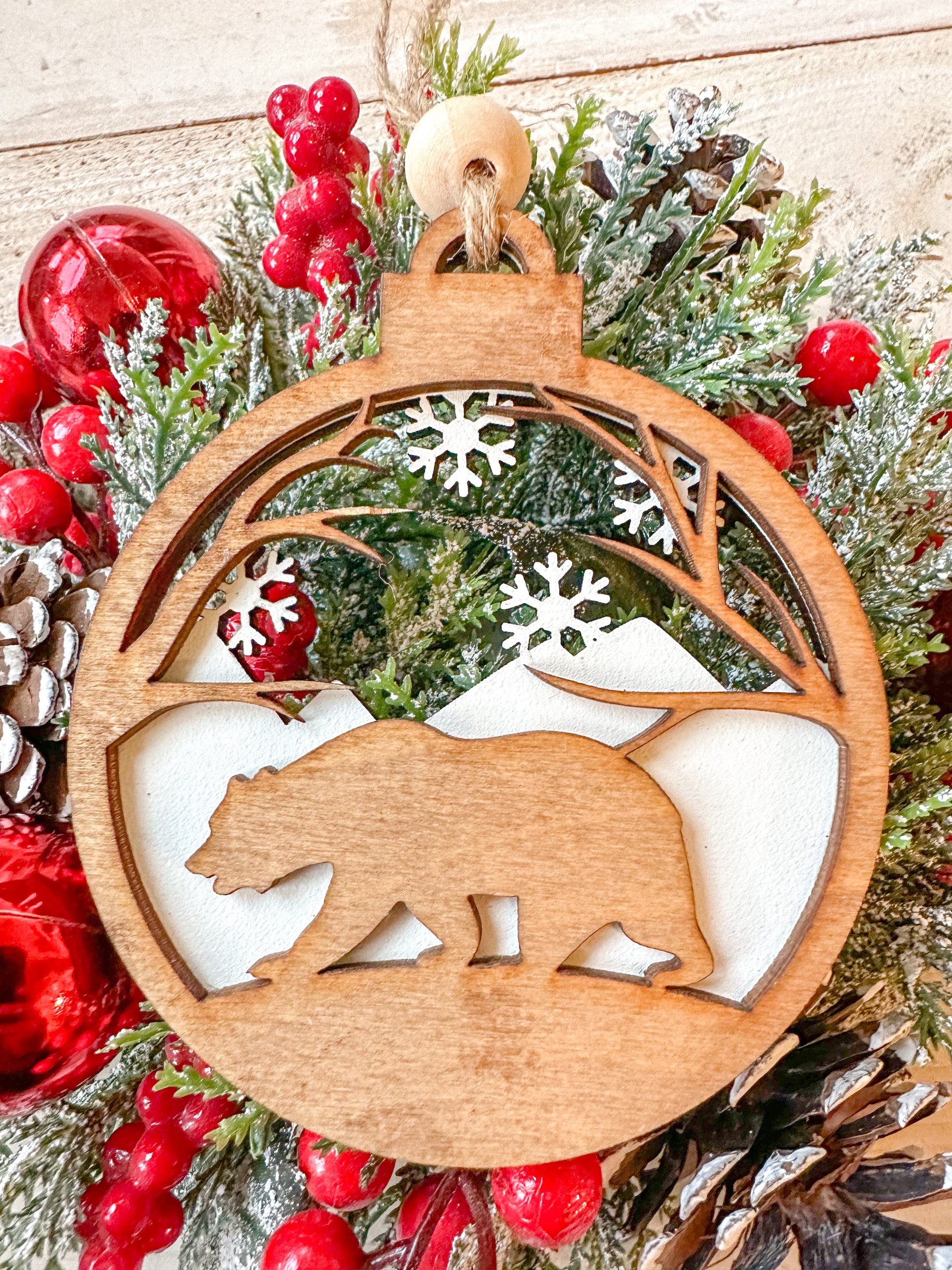 Rustic Woodland Bear Ornament – Handcrafted Wildlife Christmas Decor