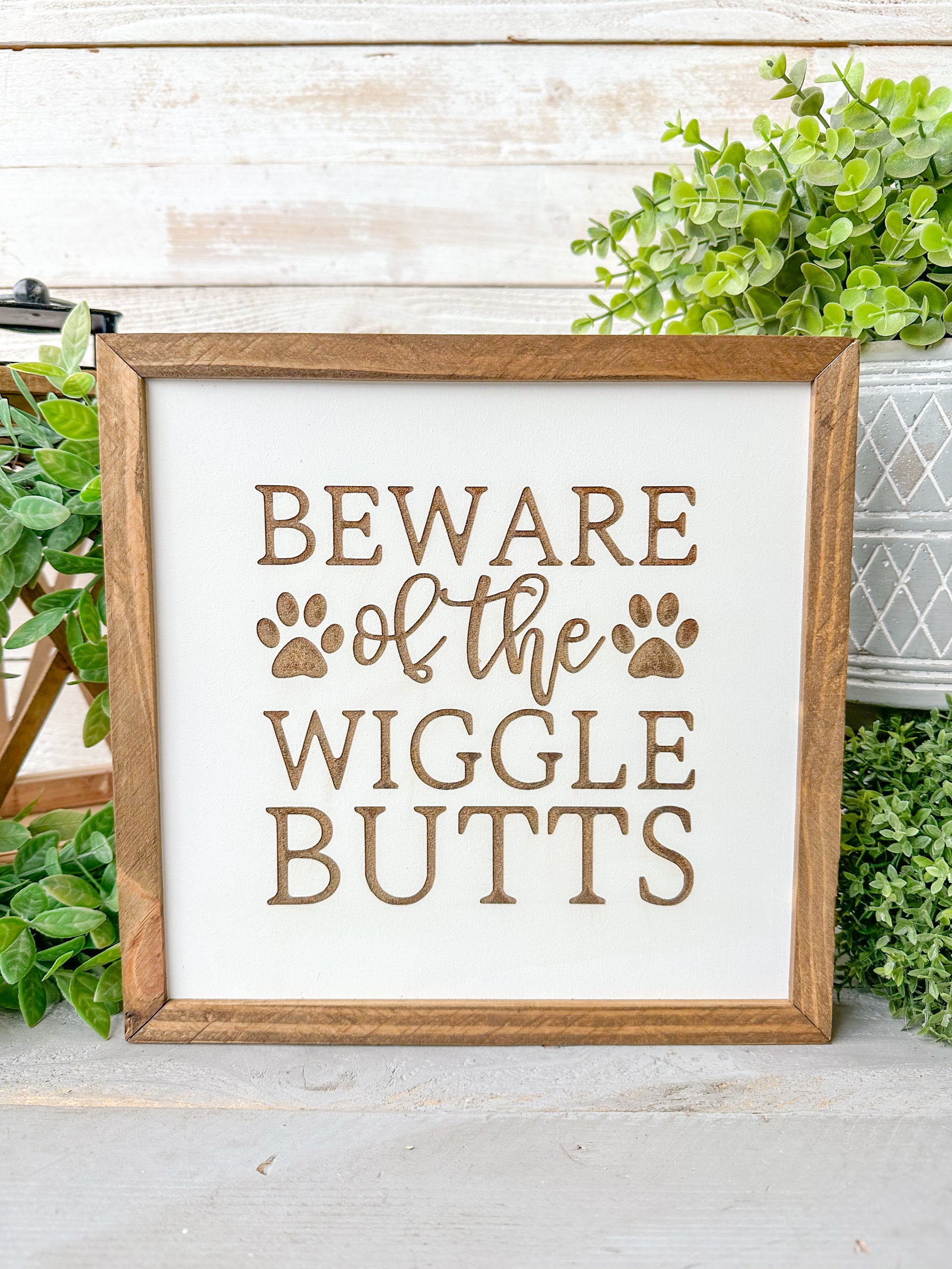 Beware of the wiggle butts, Laser Engraved Wooden Sign for Dog Lovers