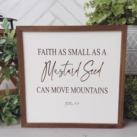 Inspire and uplift with this beautifully crafted wooden sign that carries a profound message: “Faith as Small as a Mustard Seed Can Move Mountains” (Matthew 17:20). This elegant piece serves as a daily reminder of the power of faith, no matter its size. It’s perfect for displaying in any room where you seek inspiration or a touch of serenity.