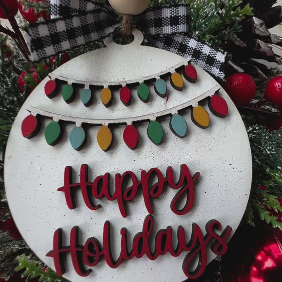 Happy Holidays Ornament – Handcrafted Christmas Tree Decoration & Gift Tag with Festive Lights