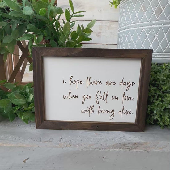 I hope there are days when you fall in love with being alive. Laser engraved wood sign.