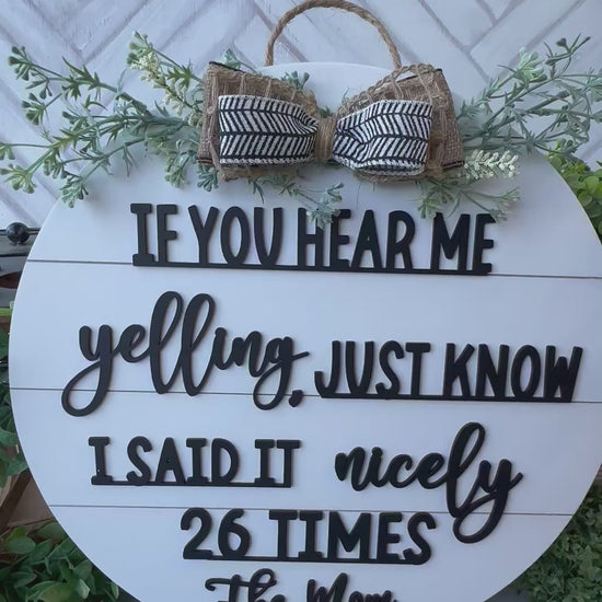 If you hear me yelling just know I said it nicely 26 times the mom. 18inch Door Hanger / Door Round