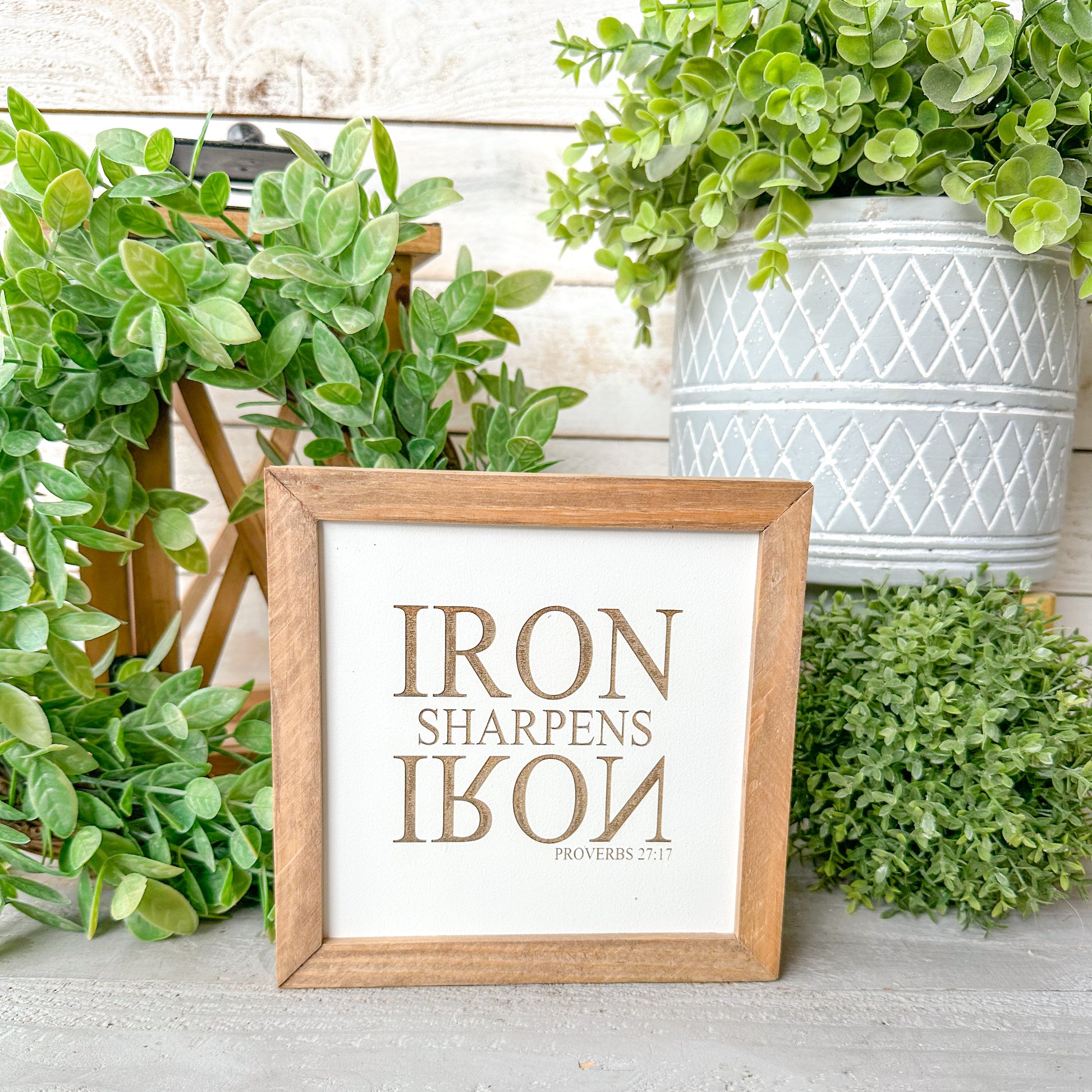 Iron Sharpens Iron Bible Verse Wood Sign – Proverbs 27:17 Inspirational Christian Home Décor