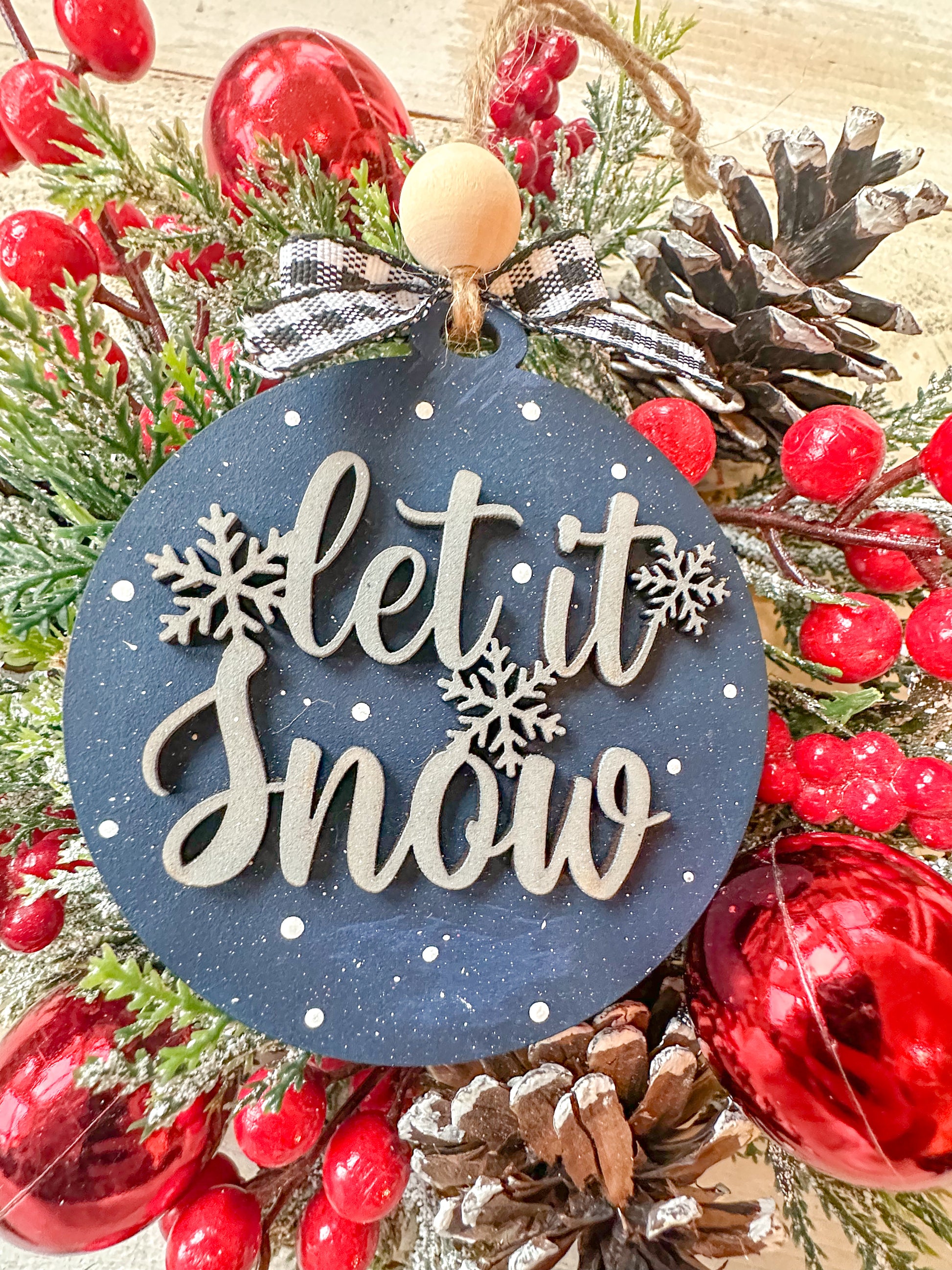 Bring a touch of winter magic to your holiday décor with this handcrafted Let It Snow ornament! Featuring a deep navy blue background, delicate snowflakes, and elegant lettering, this ornament is perfect for adding cozy charm to your Christmas tree, gift wrapping, or seasonal displays. Handmade with layered wood details, it offers a timeless, rustic appeal that complements any holiday aesthetic.