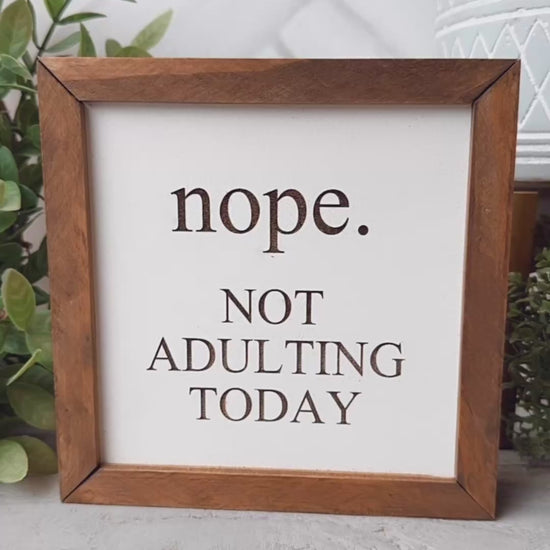 Nope. Not Adulting Today Laser Engraved Wooden Sign