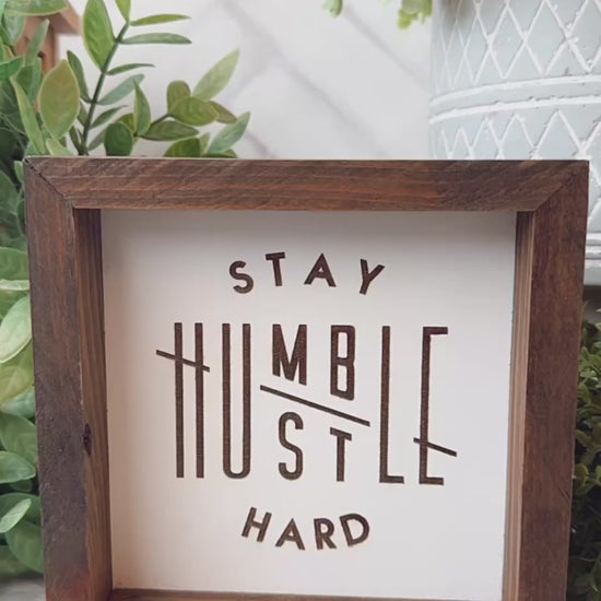 Add a touch of inspiration to your space with our "Stay Humble, Hustle Hard" laser-engraved wood sign. Perfect for a home office, workspace, or any area where motivation is key, this modern and minimalist design serves as a daily reminder to work hard while staying grounded. Its sleek typography and rustic wood frame make it a versatile piece that complements farmhouse, industrial, or contemporary decor styles. Ideal for entrepreneurs, students, or anyone chasing their dreams.