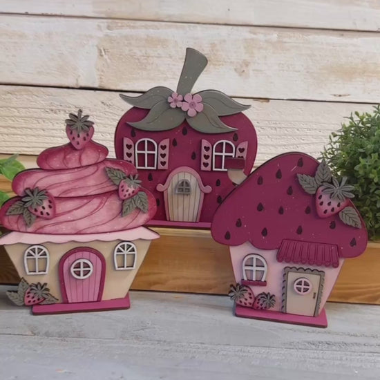 Strawberry Standing Houses – Handcrafted 3D Summer Decor for Tiered Trays & Shelves