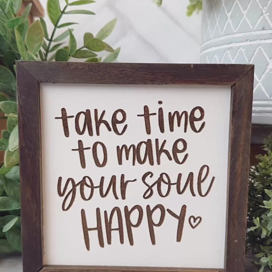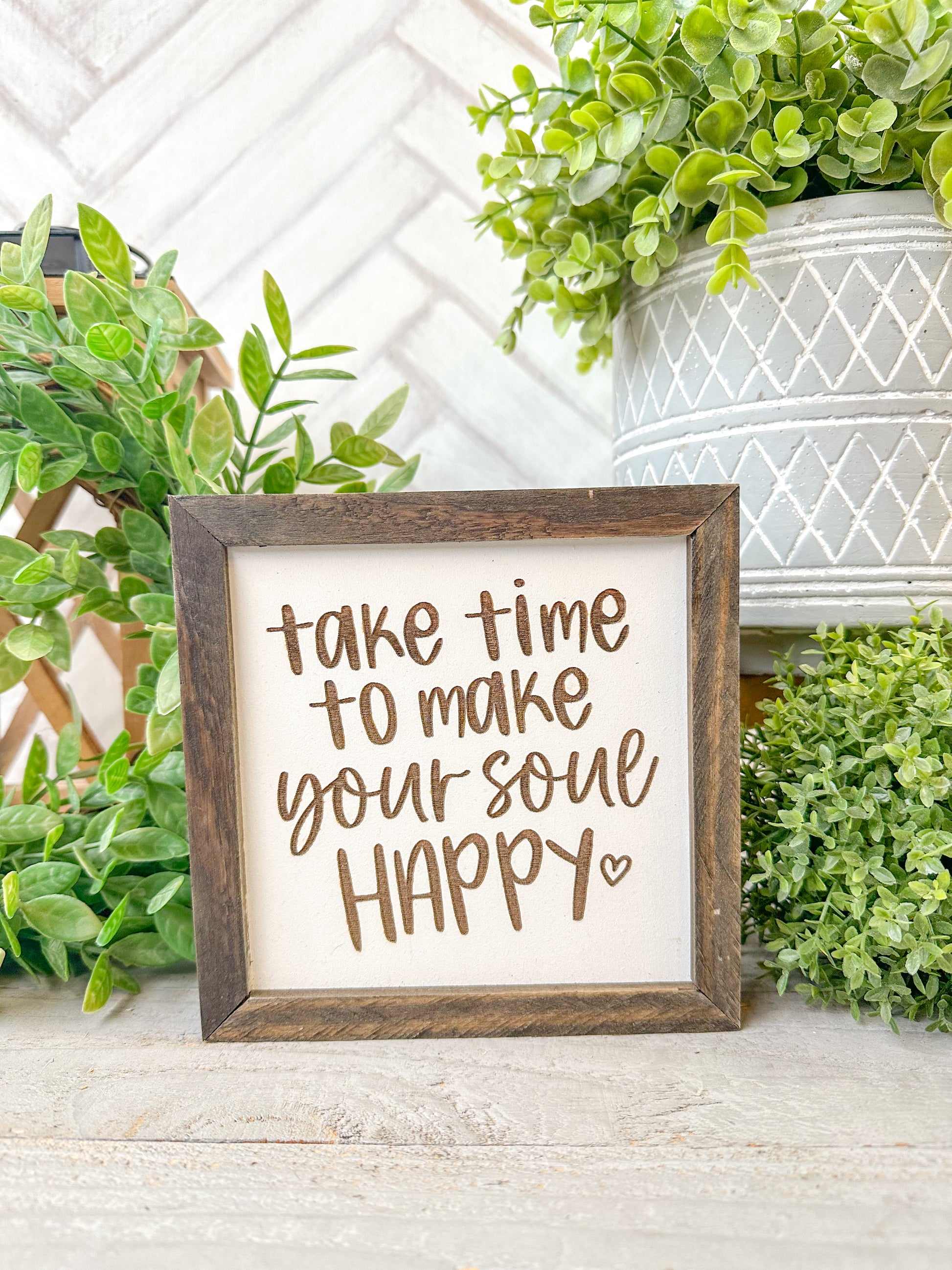 Take Time to Make Your Soul Happy Inspirational Laser Engraved Wood Sign