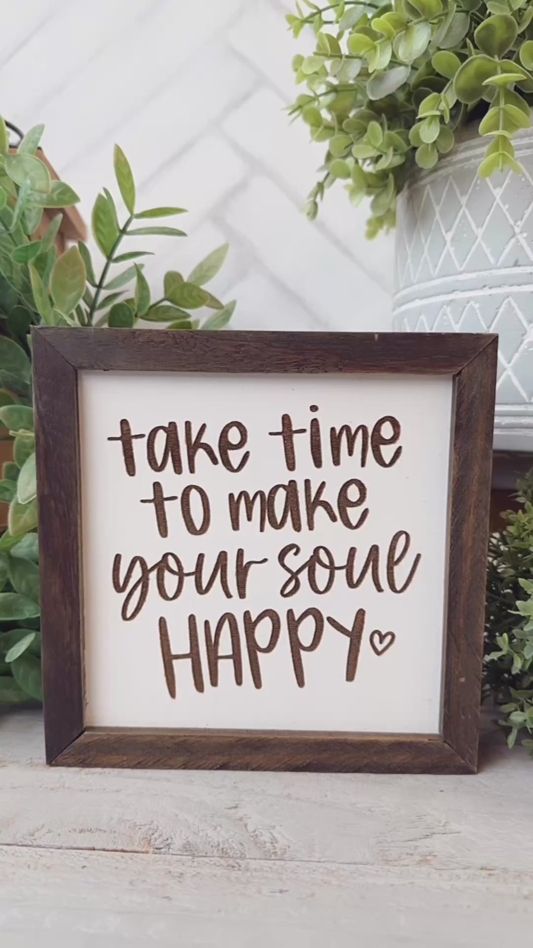Bring a touch of positivity to your space with our "Take Time to Make Your Soul Happy" laser-engraved wood sign. Perfect for reminding yourself to prioritize joy, self-care, and inner peace, this motivational piece adds warmth and charm to any room. Whether placed on a desk, shelf, or gallery wall, this sign offers an uplifting message that resonates every day. A thoughtful gift for friends, family, or anyone seeking encouragement in their journey.