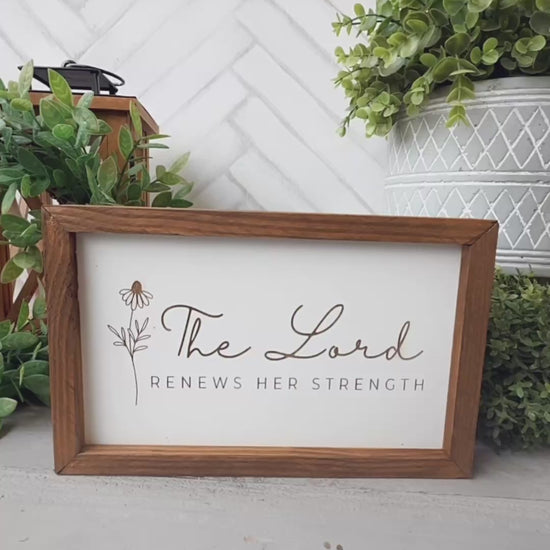 The Lord Renews Her Strength Inspirational Laser Engraved Wood Sign