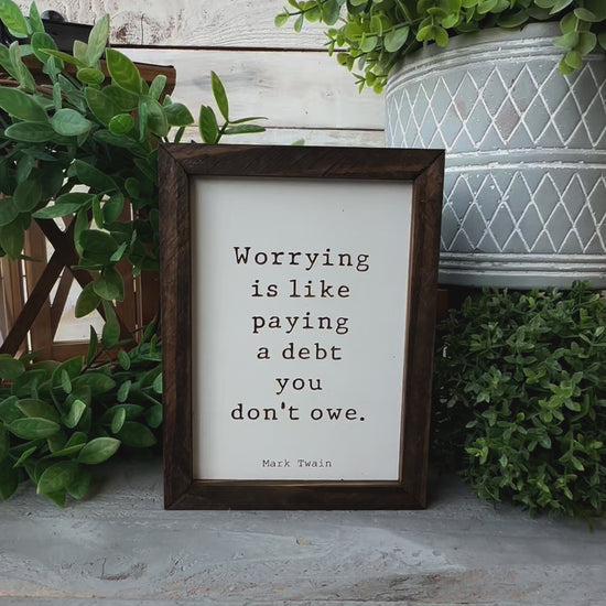 Worrying is like paying a debt you don’t owe Mark Twain. Laser Engraved Wood Sign.