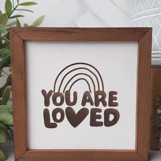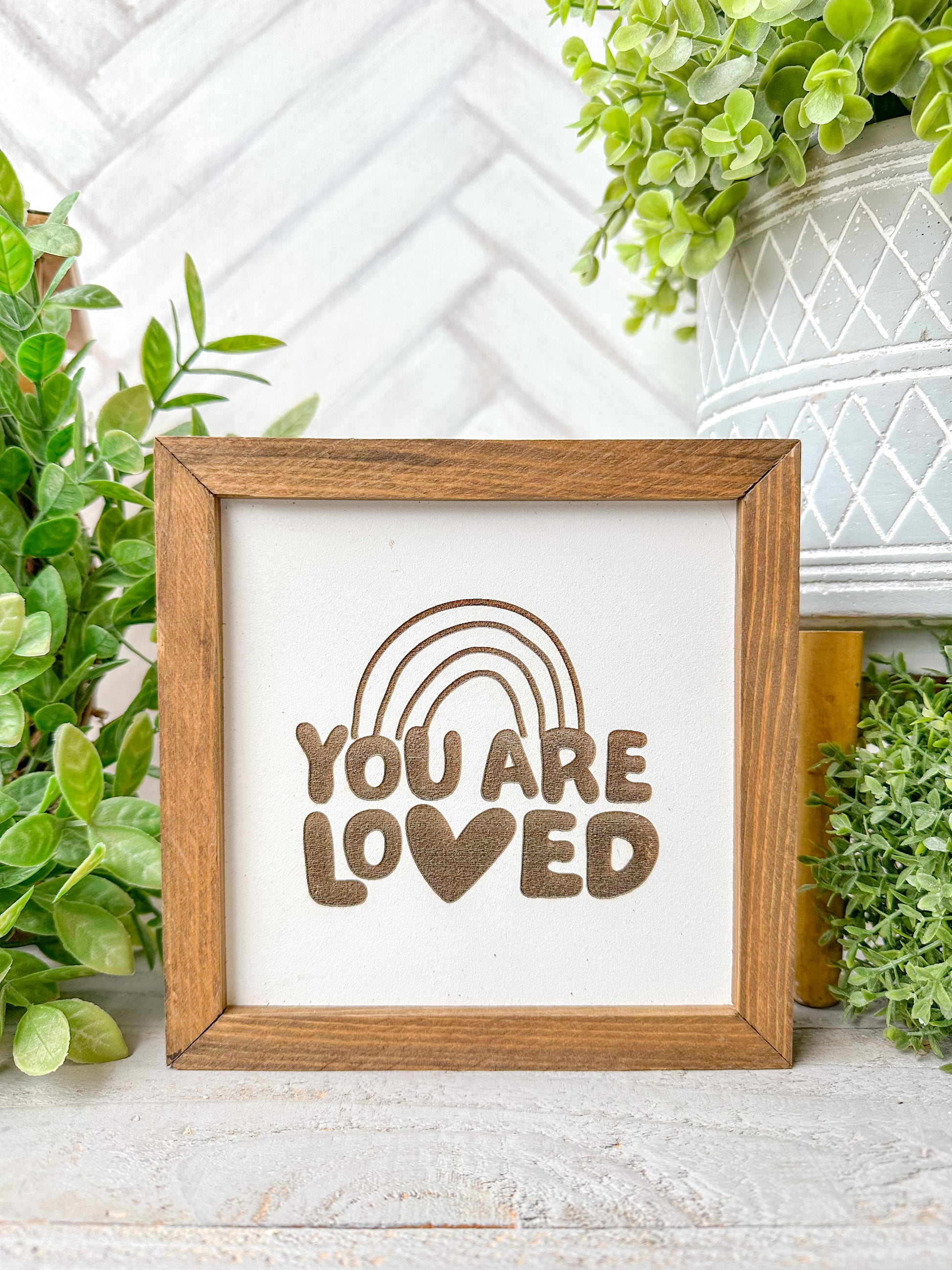 Add a touch of love and positivity to any space with this "You Are Loved" laser engraved wooden sign. Featuring a charming rainbow and heart design, this sign is a heartwarming reminder for your loved ones, making it perfect for nurseries, kids' rooms, or as an uplifting addition to any home.